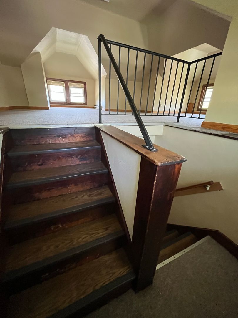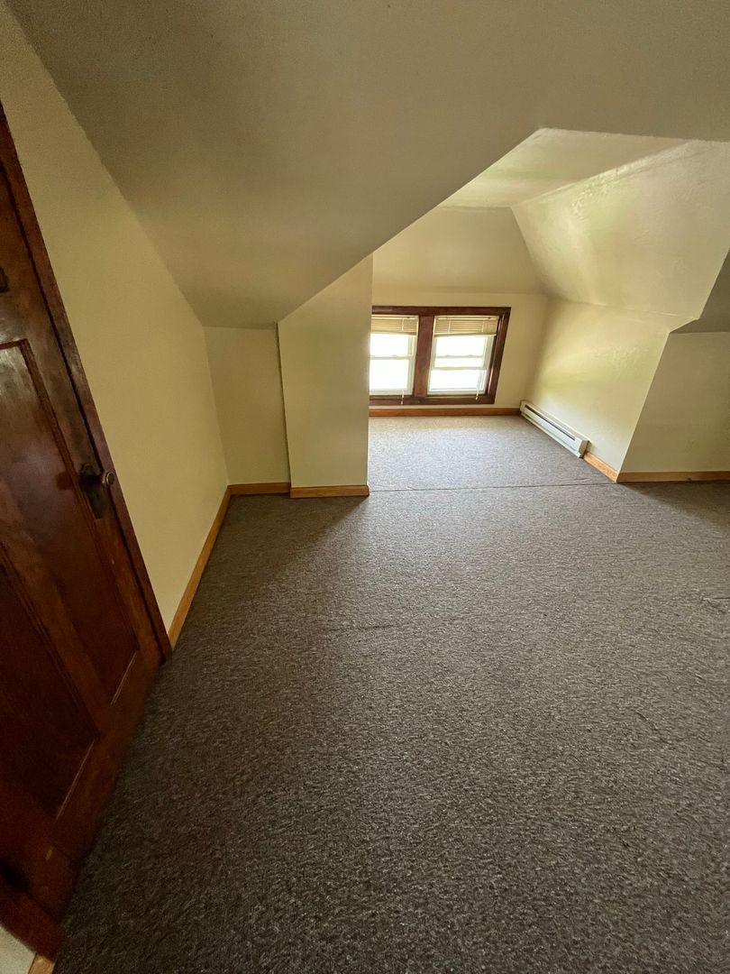 Available May 2026! Walking distance from UNI campus! This two-bedroom, split level apartment is accompanied with on and off-street parking in addition to shared coin laundry. The unit includes a living room with a decorative fireplace, a small kitchen which includes a stove and fridge. Next to the kitchen is a full bath and one small bedroom. Up the stairs you will find a large bedroom. As an added bonus, utilities are included!!! For the warmer months, a window AC will be installed by the owner with a $35 monthly utility charge to the tenant.